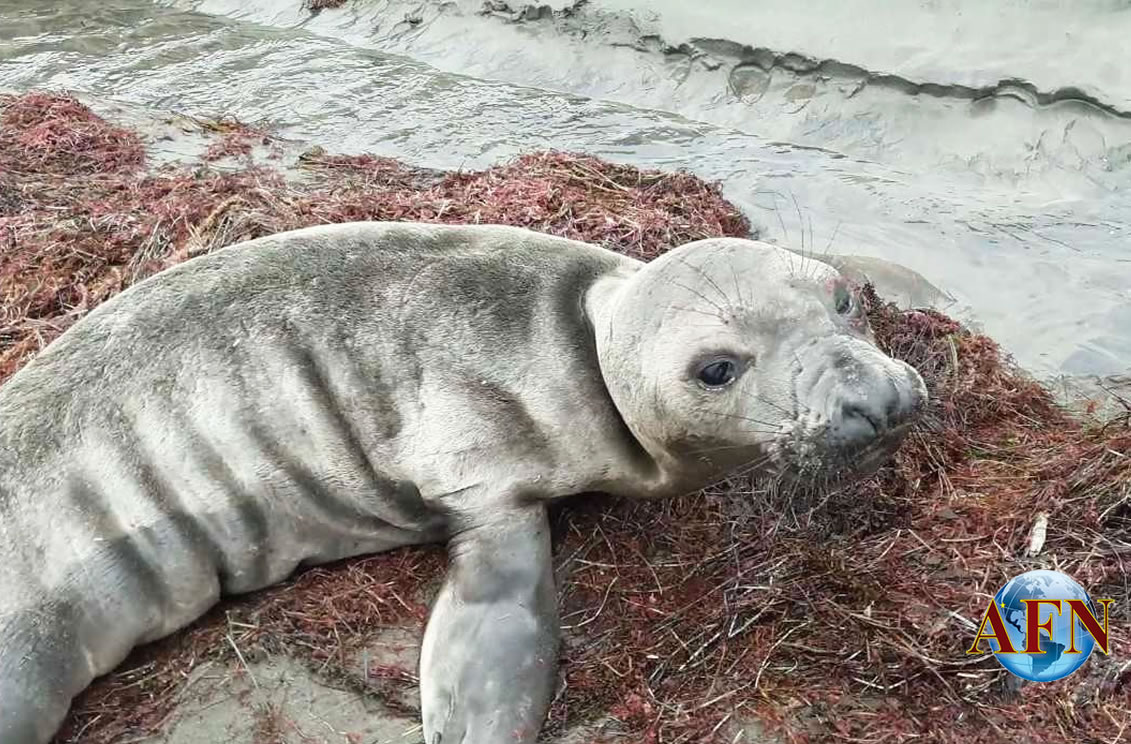 ENSENADA BC 12 DE ABRIL DE 2018 (AFN).- Una hembra de elefante marino quedó varada en una playa colindante al Puerto de El Sauzal de Rodríguez, dentro de la Bahía de Todos Santos.