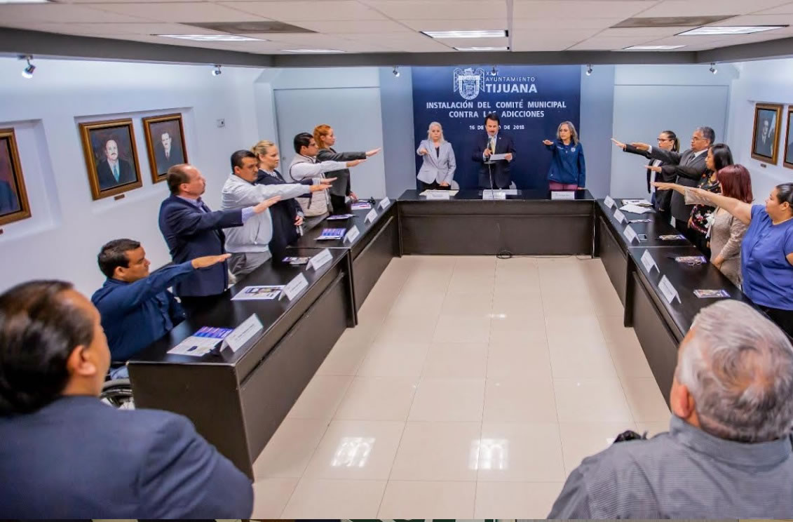 TIJUANA BC 16 DE MAYO DE 2018 (AFN).- Los integrantes del Comité Municipal Contra las Adicciones (Comca) rindieron protesta ante el presidente municipal, Juan Manuel Gastélum, y se comprometieron a impulsar mecanismos a favor de una sociedad libre de adicciones a través de la participación de los distintos sectores de la sociedad.