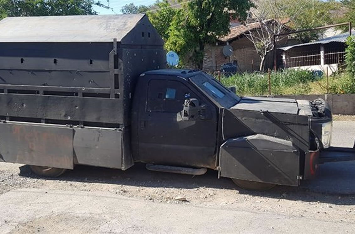 Además, se les aseguraron cargadores, fornituras y cartuchos de distintos calibres, así como el vehículo con blindaje artesanal, llamado comúnmente como "monstruo" o "narcotanque".