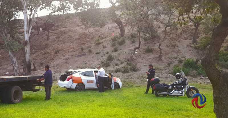 TIJUANA BC 15 DE MAYO DE 2023 (AFN).- El conductor del taxi libre de número económico TLZM16685 protagonizó una volcadura esta tarde, en una jardinera de la delegación La Mesa; el hombre salió ileso del percance, pese a que dio al menos dos volteretas y se precipitó por una ladera pronunciada.