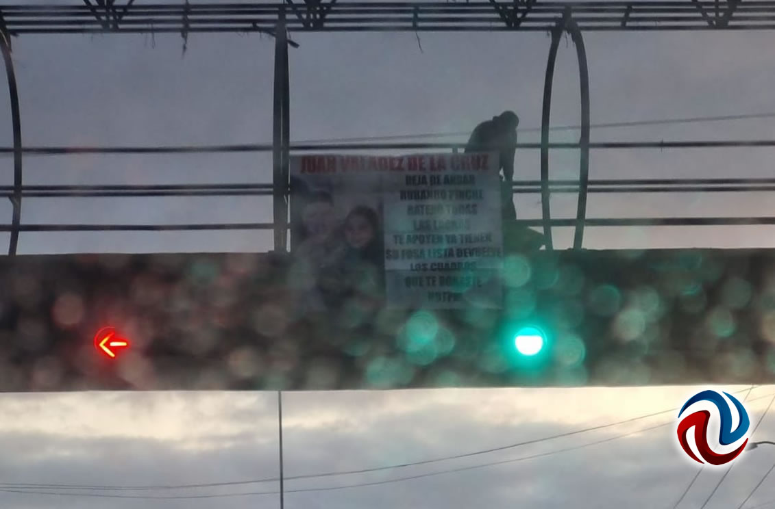 TIJUANA BC 31 DE MAYO DE 2023 (AFN).- Una manta con amenazas fue colocada la mañana de este miércoles, en un puente peatonal del bulevar Cuauhtémoc Sur.