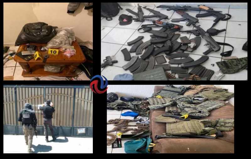 HERMOSILLO SON 5 DE JUNIO DE 2023.- Fueron decomisadas armas de asalto, armas cortas, cartuchos, cargadores, droga, vehículos y una vivienda; durante un cateo realizado en el fraccionamiento Altar Residencial de Ciudad Obregón, por elementos de la Fiscalía General de la República, informaron la tarde de hoy, autoridades de la Mesa Estatal de Seguridad de Sonora.