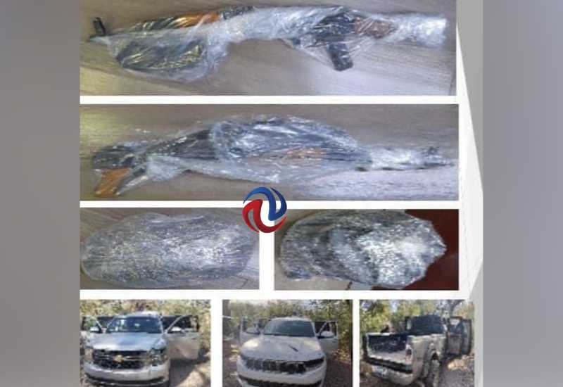 HERMOSILLO SON 1 DE DICIEMBRE DE 2023.- Dos fusiles de asalto, cargadores, cartuchos y tres automóviles abandonados, fueron decomisados en el municipio de Oquitoa al norte de la entidad, informaron de parte de la Mesa Estatal de Seguridad de Sonora.