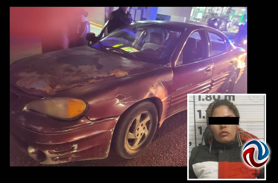 Se trata de un vehículo tipo sedan, Pontiac Grand Am color guinda, modelo 2000 con placas nacionales, cuya conductora manifestó no contar con licencia ni papeles de la unidad, además de que los agentes observaron daños en el encendido, por lo que verificaron datos en la central de radio C4, donde se les indicó que había reporte de robo.