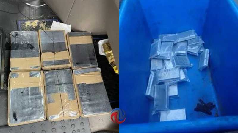 Se encontraron un total de 67 paquetes de cocaína con un peso combinado de 171.37 libras (77.73 kg)