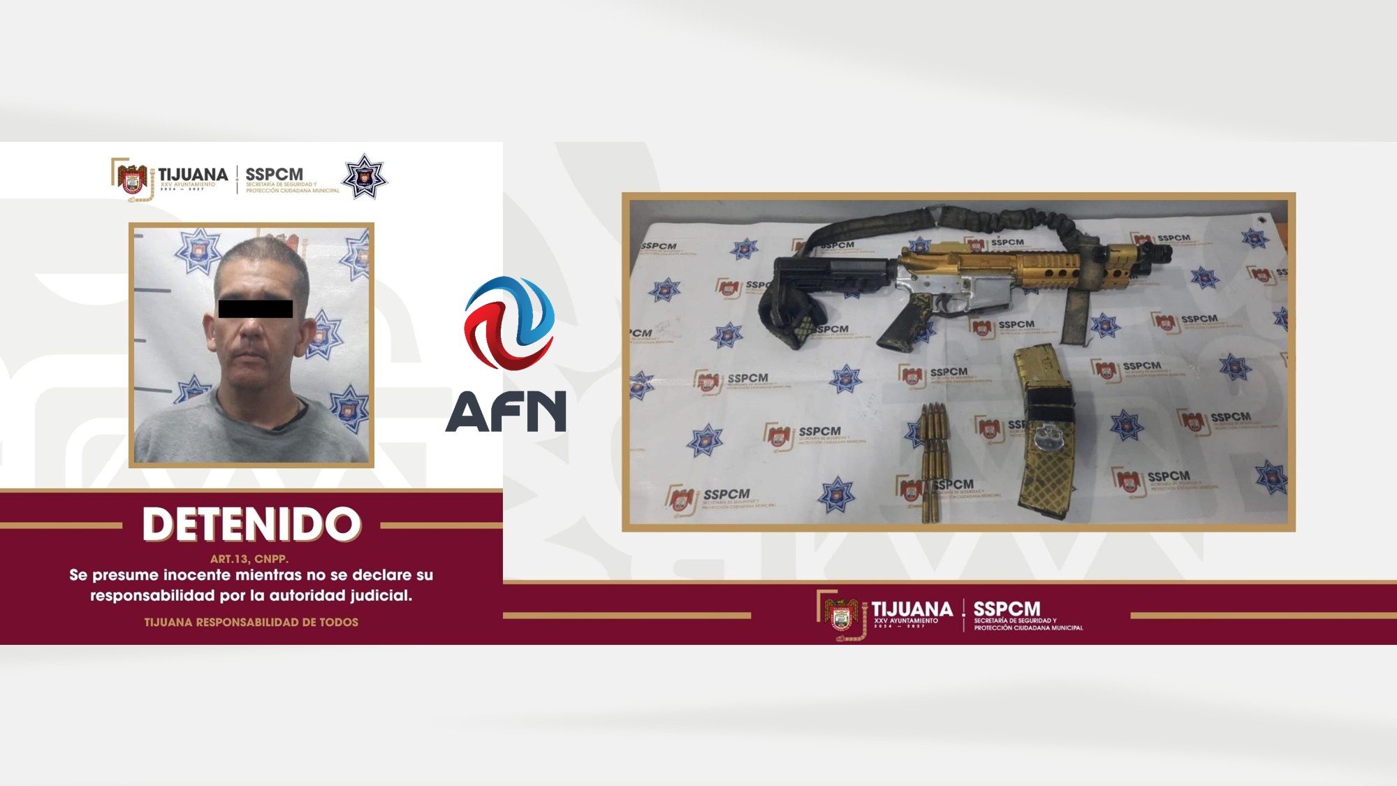 TIJUANA BC 5 DE OCTUBRE DE 2025 (AFN).- Un hombre identificado como Miguel Arturo “N.” fue detenido en posesión de un arma larga durante una movilización policial llevada a cabo en la colonia Reforma.