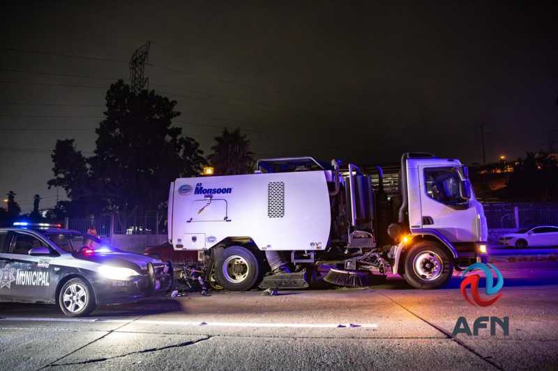 TIJUANA BC 12 DE OCTUBRE DE 2025 (AFN).- Un motociclista, no identificado, falleció esta madrugada al impactarse contra una barredora que realizaba labores de limpieza sobre la vía fápida Poniente, a la altura del Proyecto Morado, en dirección al bulevar Insurgentes.