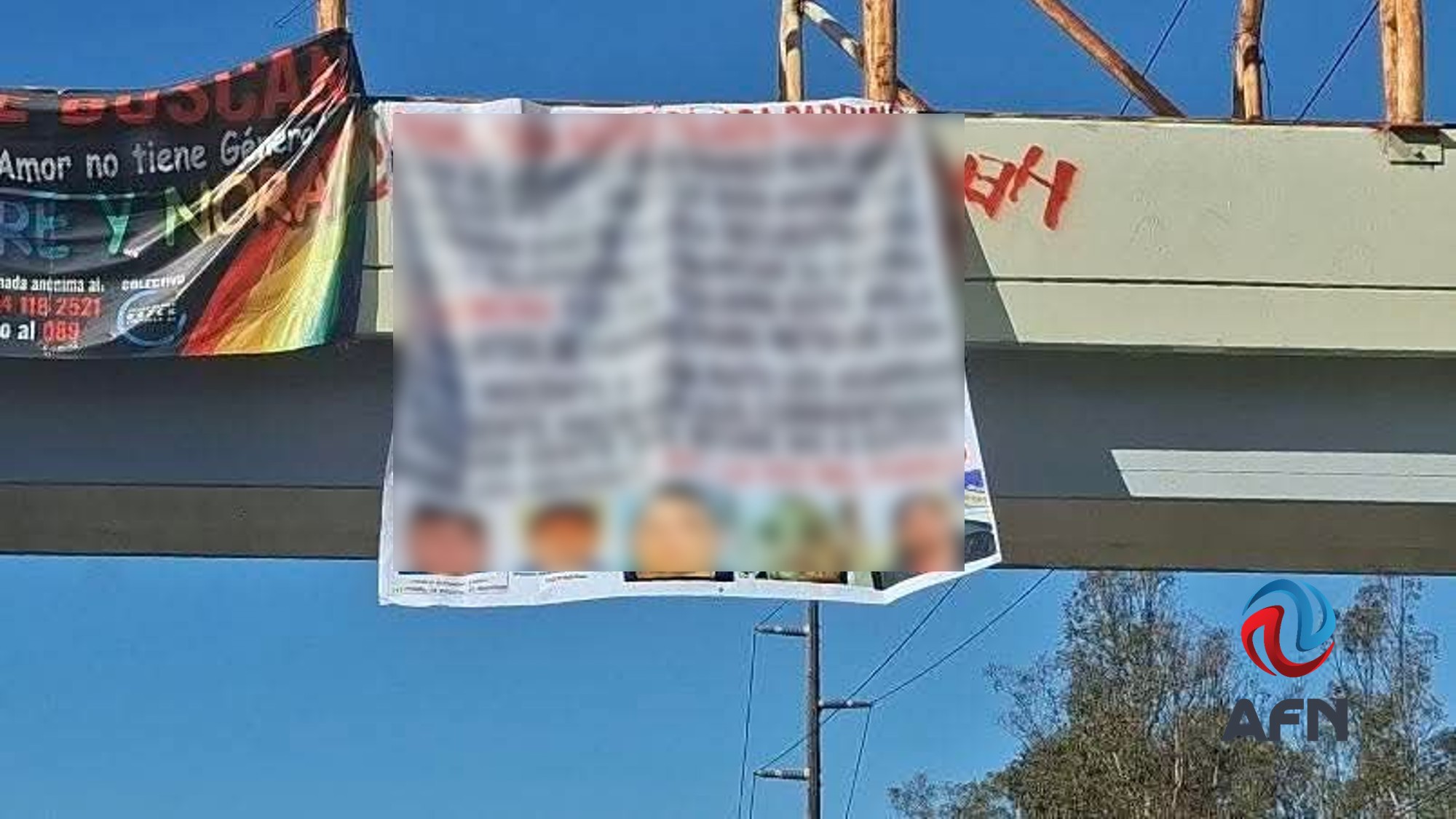TIJUANA BC 16 DE OCTUBRE DE 2025 (AFN).- Una manta con amenazas fue colgada en un puente peatonal del bulevar Fundadores, a la altura de la colonia El Rubí, alrededor de las dos de la tarde.