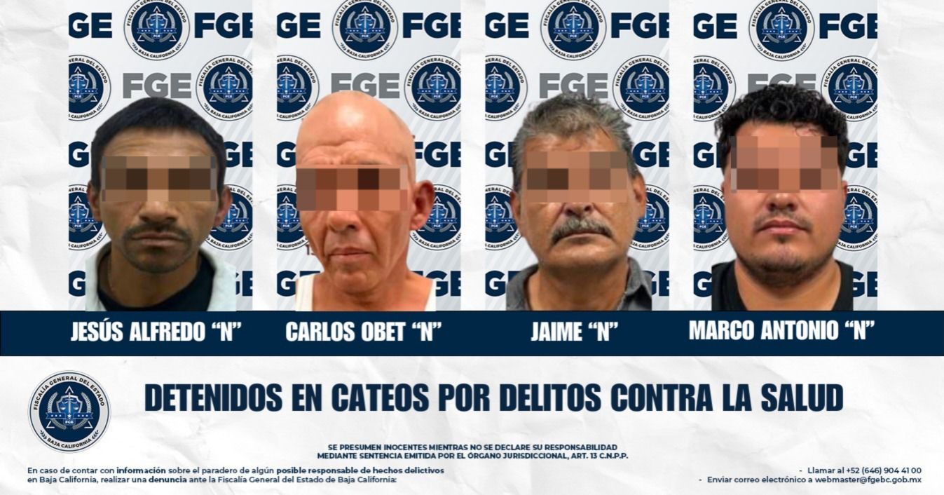 TIJUANA BC 21 DE OCTUBRE DE 2025 (AFN).- Cuatro personas fueron detenidas por elementos de la Fiscalía Especializada en Narcomenudeo, durante cateos realizados en Tijuana y Playas de Rosarito, como resultado de investigaciones relacionadas con la posible compraventa de narcóticos.