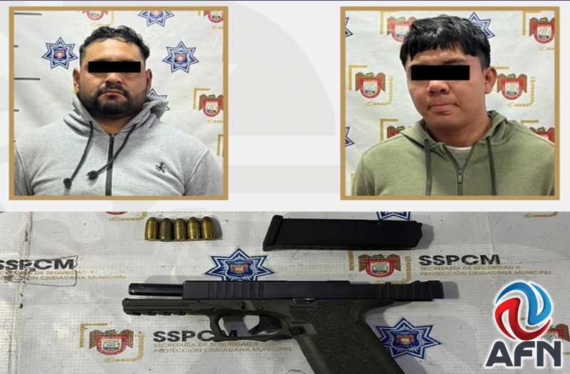 En una revisión precautoria, los agentes localizaron un arma de fuego tipo pistola abastecida con cinco cartuchos útiles en la guantera del vehículo, por lo que se procedió a la detención de quienes se identificaron como Antonio Eli “N” y Pedro Alejandro “N”, quienes fueron puestos a disposición de las autoridades competentes.