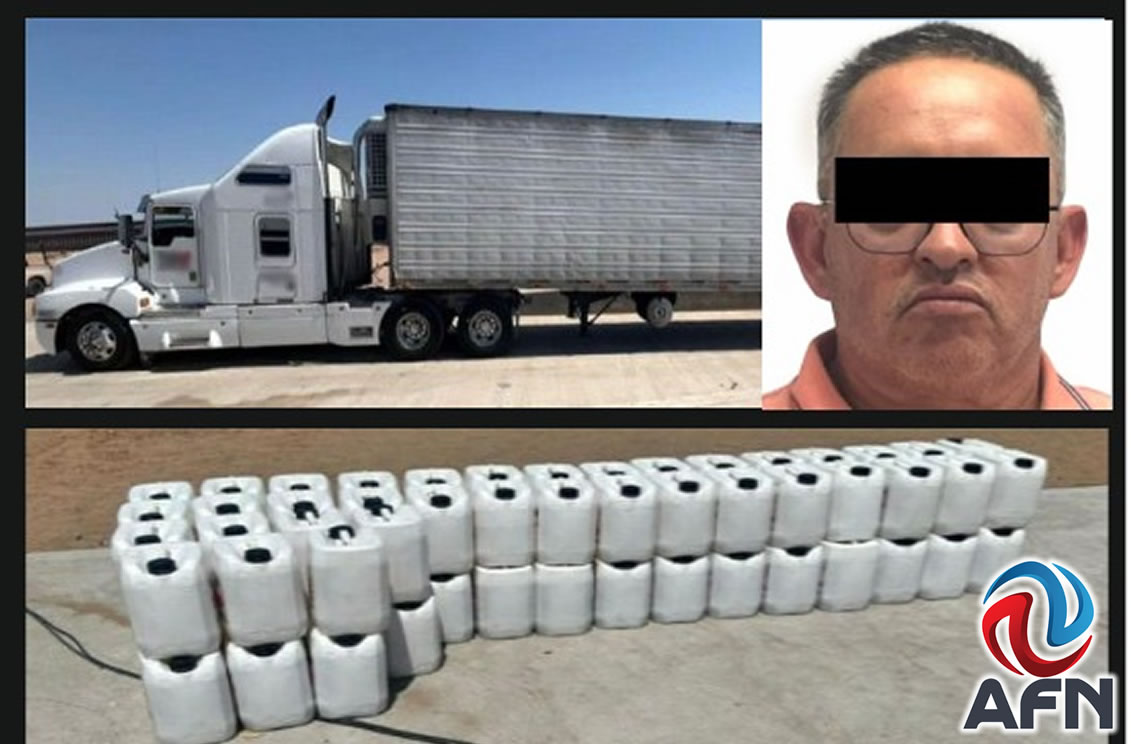 MEXICALI BC 4 DE DICIEMBRE DE 2025 (AFN).- Amílcar “C”, conductor de tráiler detenido hace cuatro meses en un retén militar, recibió una sentencia de seis años y ocho meses por transporte de drogas; las autoridades le decomisaron 831.51 kilogramos de metanfetamina y 733.556 litros de metanfetamina líquida.