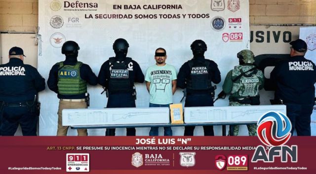MEXICALI BC 12 DE DICIEMBRE DE 2025 (AFN).- Agentes de la Fuerza Estatal de Seguridad Ciudadana (FESC) detuvieron en Mexicali, a José Luis “N”, de 44 años, alias "El Wisho", en posesión de dos fusiles, a quien se le relaciona con un grupo de la delincuencia organizada responsable de actos de violencia en la región.