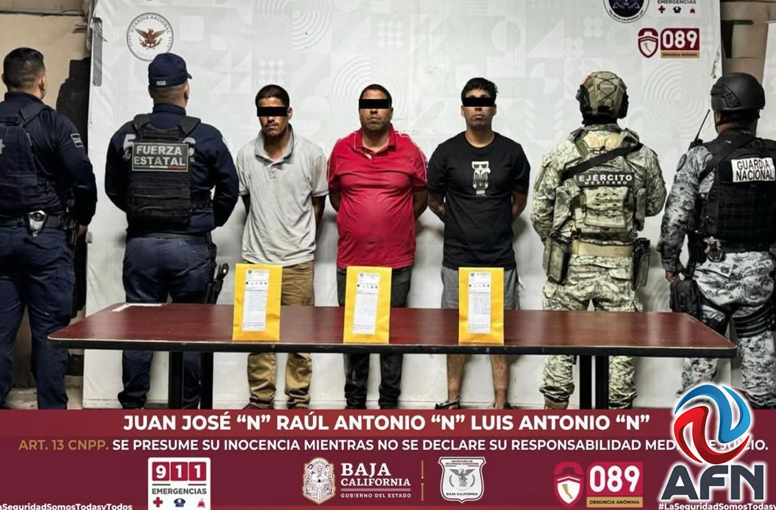 MEXICALI BC 18 DE DICIEMBRE DE 2025 (AFN).- Agentes de la Fuerza Estatal de Seguridad Ciudadana (FESC) detuvieron a tres hombres en Mexicali por presunta venta de drogas.