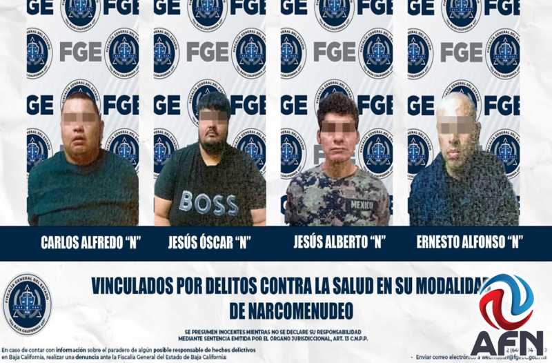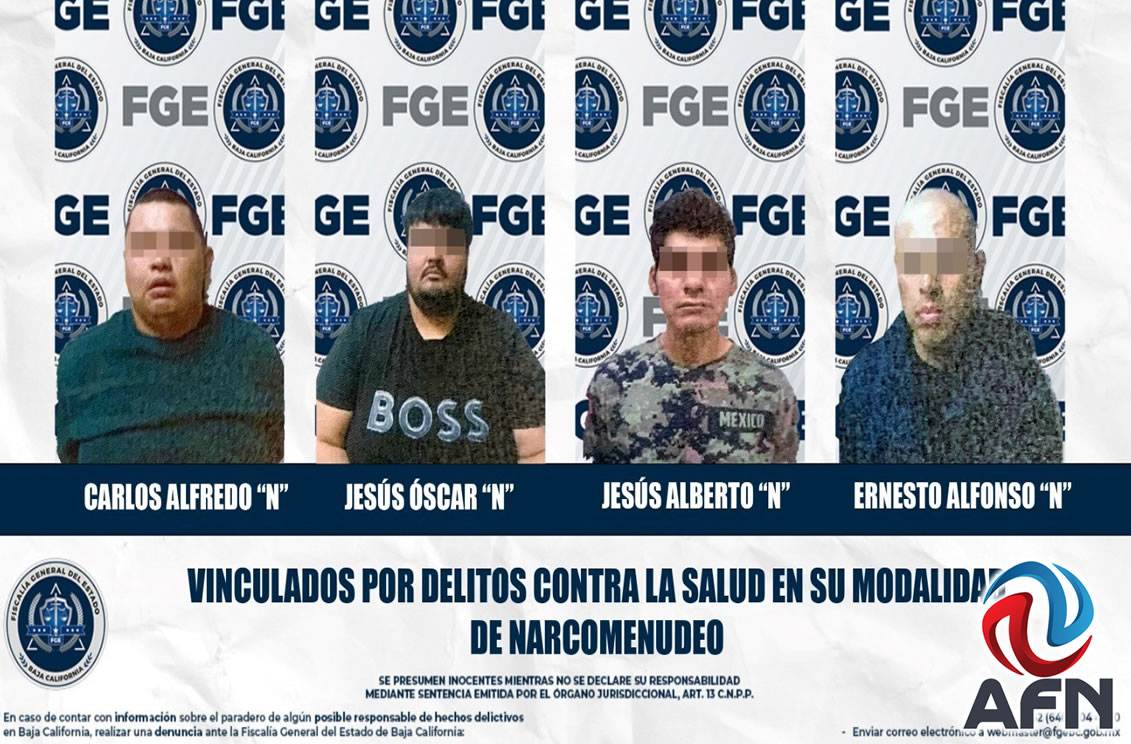 MEXICALI BC 27 DE DICIEMBRE DE 2025 (AFN).- Cuatro hombres fueron vinculados a proceso por delitos contra la salud, en la modalidad de narcomenudeo, en Mexicali, informó la fiscalía estatal.