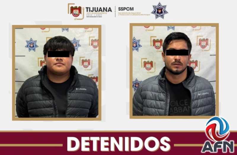 TIJUANA BC 31 DE DICIEMBRE DE 2025 (AFN).- Dos hombres fueron detenidos por agentes de la Policía Municipal, quienes les decomisaron droga tras un reporte ciudadano que alertó sobre la presencia de personas armadas en una plaza comercial de la zona 5 y 10, en la colonia Las Fuentes.