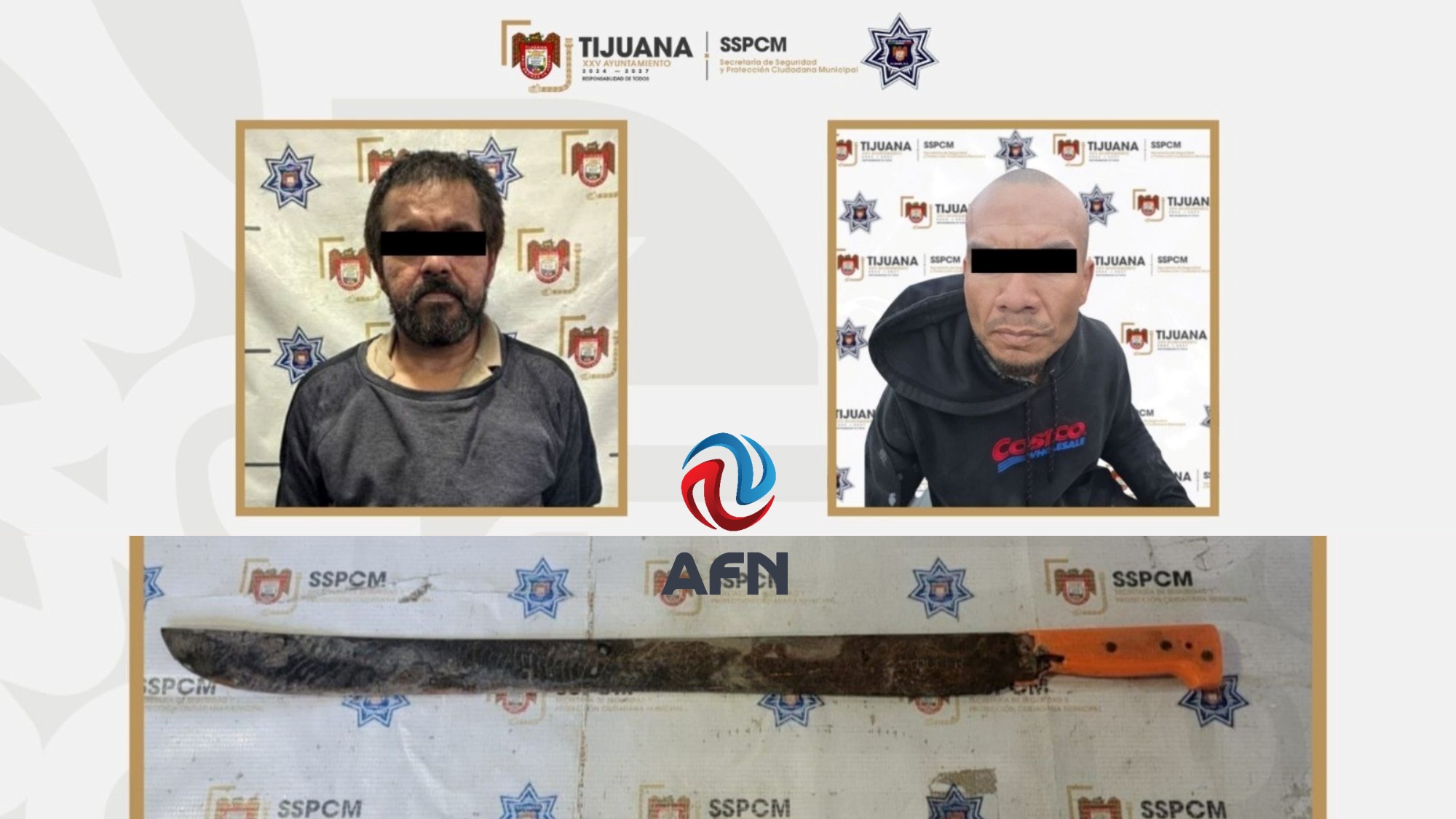 TIJUANA BC 5 DE ENERO DE 2026 (AFN).- Dos hombres fueron detenidos por agentes de la Policía Municipal luego de un reporte de allanamiento de morada que derivó en una agresión con arma blanca al interior de un domicilio en Tijuana.