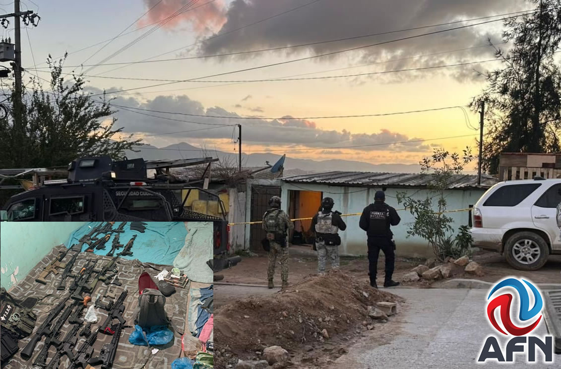 TIJUANA BC 10 DE ENERO DE 2026 (AFN).- Un domicilio de la colonia El Niño fue cateado por fuerzas de seguridad de Baja California, donde se localizaron armas de fuego, cartuchos, equipo táctico y droga, como parte de un operativo realizado en días recientes.