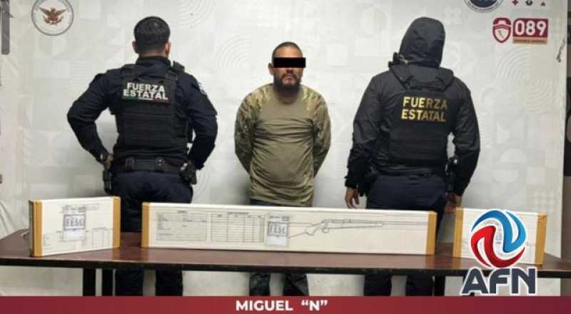 TECATE BC 10 DE ENERO DE 2026 (AFN).- Un individuo identificado como Miguel “N” de 38 años fue detenido en Tecate, por agentes de la Fuerza Estatal de Seguridad Ciudadana (FESC) en posesión de armas de fuego y equipo táctico.