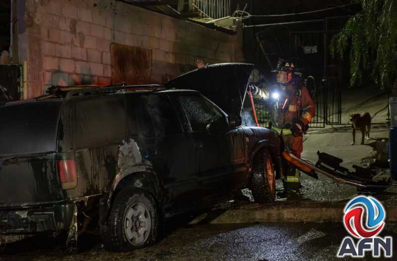 TIJUANA BC 13 DE ENERO DE 2026 (AFN).- Una camioneta Chevrolet Blazer se incendió la noche del lunes sobre la calle Del Sabino, en la colonia Ciudad Jardín.