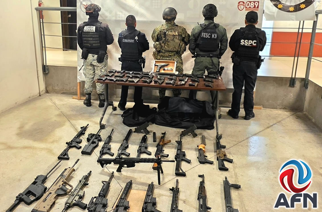 TIJUANA BC 16 DE ENERO DE 2026 (AFN).- Más de 50 armas de fuego, cargadores y un vehículo fueron decomisadas en la carretera antigua Tijuana-Tecate, a la altura de la colonia García, tras un reporte que alertó a las autoridades sobre la presencia de personas armadas en la zona.