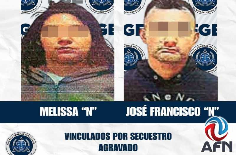 TIJUANA BC 17 DE ENERO DE 2026 (AFN).- Dos personas identificadas como Melissa “N” y José Francisco “N”, alias “El Pelón”, fueron vinculadas a proceso por el delito de secuestro agravado, por hechos ocurridos en diciembre de 2025 en la colonia Guerrero de Tijuana, informó la Fiscalía General del Estado.