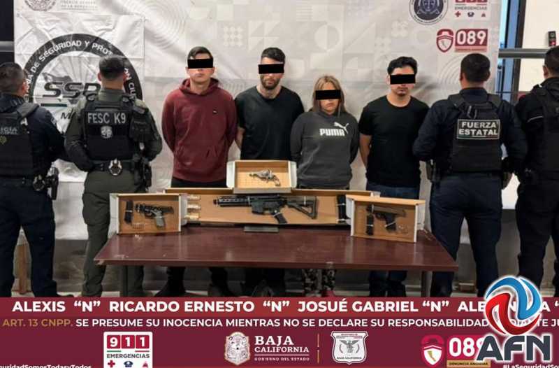 Los detenidos fueron identificados como Alexis “N”, de 36 años, originario de San Diego, California; Ricardo Ernesto “N”, de 19 años, Josué Gabriel “N” de 20 años y Alejandra “N”, de 35 años, los tres originarios de Tijuana.
