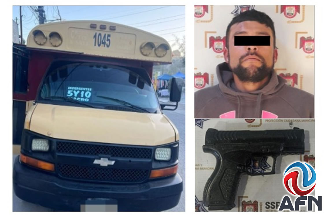 TIJUANA BC 5 DE FEBRERO DE 2026 (AFN).- Un hombre identificado como Brando Alexis “N” fue detenido después de que, acompañado de un cómplice aún prófugo, asaltaron a los pasajeros de un transporte público tipo "calafia"; para ello utilizaron una pistola de utilería.