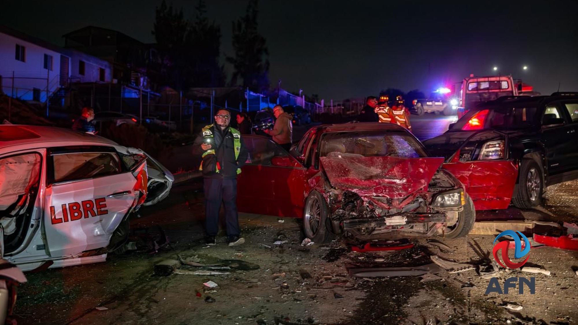TIJUANA BC 15 DE FEBRERO DE 2026 (AFN).- La madrugada de este domingo se registró un fuerte choque tipo carambola, sobre el bulevar Casablanca, con un saldo de 10 personas lesionadas y múltiples daños materiales en siete vehículos.