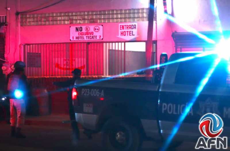 TECATE BC 13 DE MARZO DE 2026 (AFN).- Un hombre fue ejecutado a tiros afuera del Hotel Tecate, en plena zona Centro, la madrugada de este viernes; durante su huida, el agresor se enfrentó contra oficiales de la Policía Municipal, logrando herir a uno de los uniformados; el atacante no fue detenido.