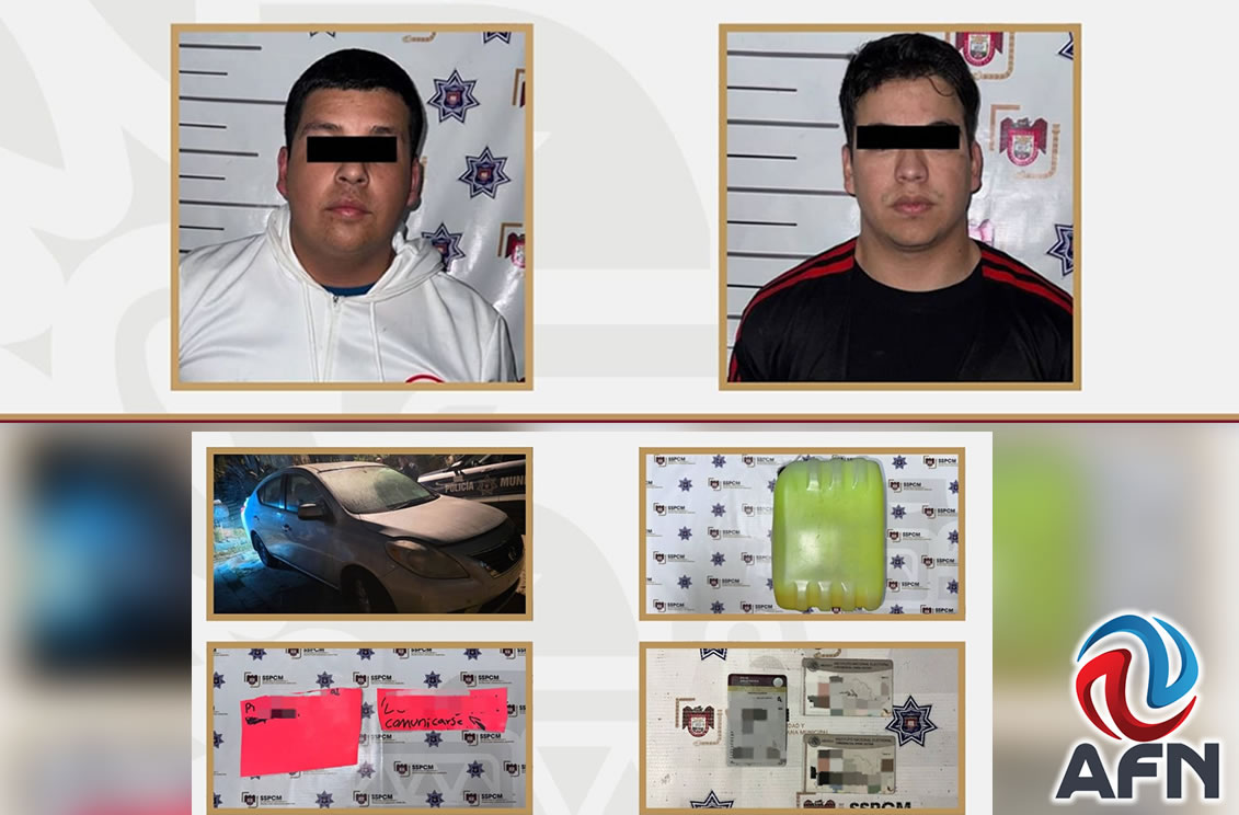 TIJUANA BC 16 DE MARZO DE 2026 (AFN).- Agentes de la Policía Municipal detuvieron a dos hombres cuando presuntamente intentaban incendiar un vehículo y colocar cartulinas con mensajes intimidatorios, en la colonia Obrera.