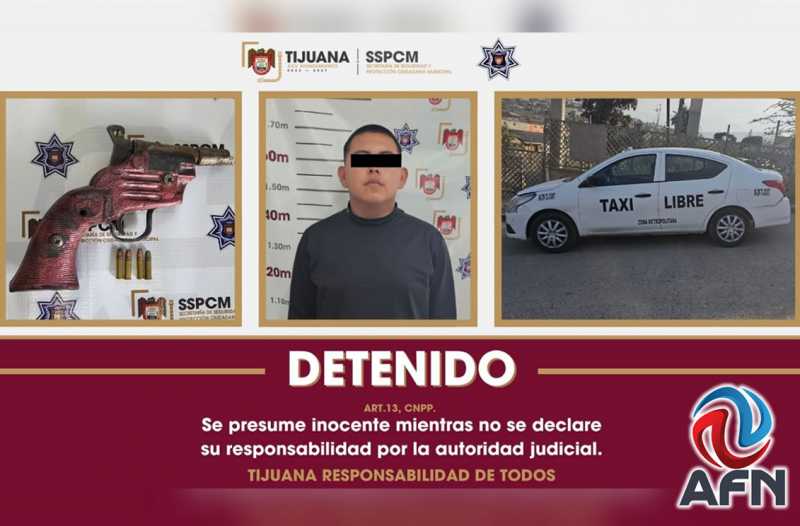 TIJUANA BC 7 DE ABRIL DE 2026 (AFN).- David "N", conductor de un taxi libre, fue detenido por presunto robo a mano armada; fue señalado directamente por su víctima en la colonia Maclovio Rojas, informó la Secretaría de Seguridad y Protección Ciudadana Municipal (Sspcm) de Tijuana.