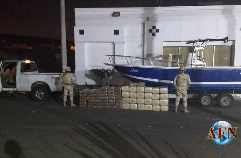 PLAYAS DE ROSARITO BC 16 DE JUNIO DE 2018 (AFN).- Elementos del Ejército Mexicano decomisaron alrededor de 445 kilogramos de mariguana, un vehículo, un remolque, una embarcación y un motor; en un operativo que tuvo lugar en la Carretera Escénica Tijuana-Ensenada, a la altura del municipio de Playas de Rosarito. Los responsables se dieron a la fuga.