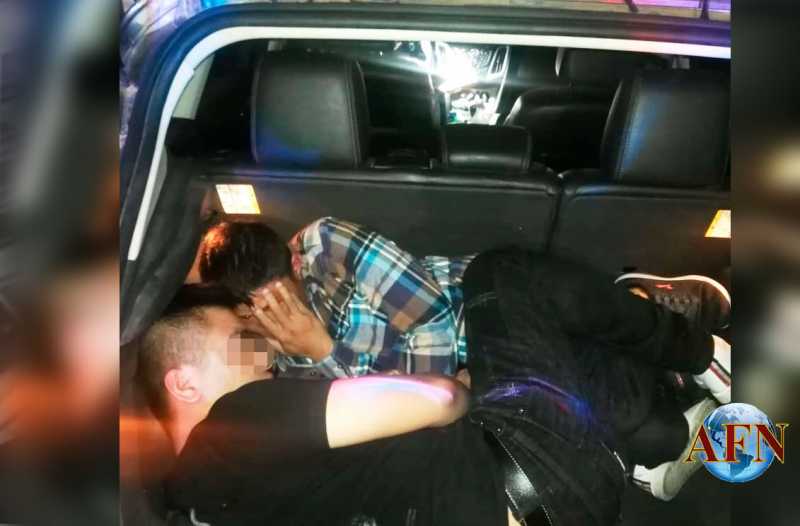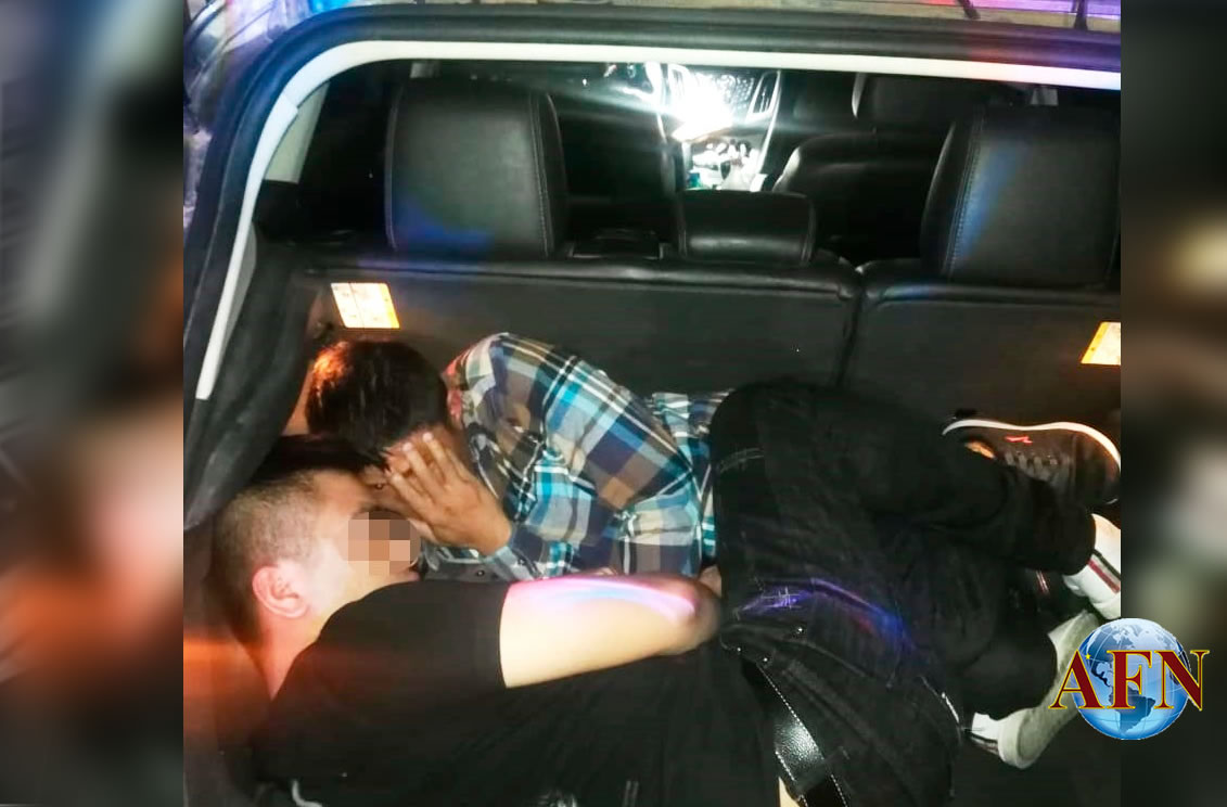 TIJUANA BC 23 DE OCTUBRE DE 2018 (AFN).- Agentes de la Policía Municipal detuvieron a una pareja por tráfico de personas,quienes intentaron cruzar a dos orientales a Estados Unidos, ocultos en el maletero de un auto.
