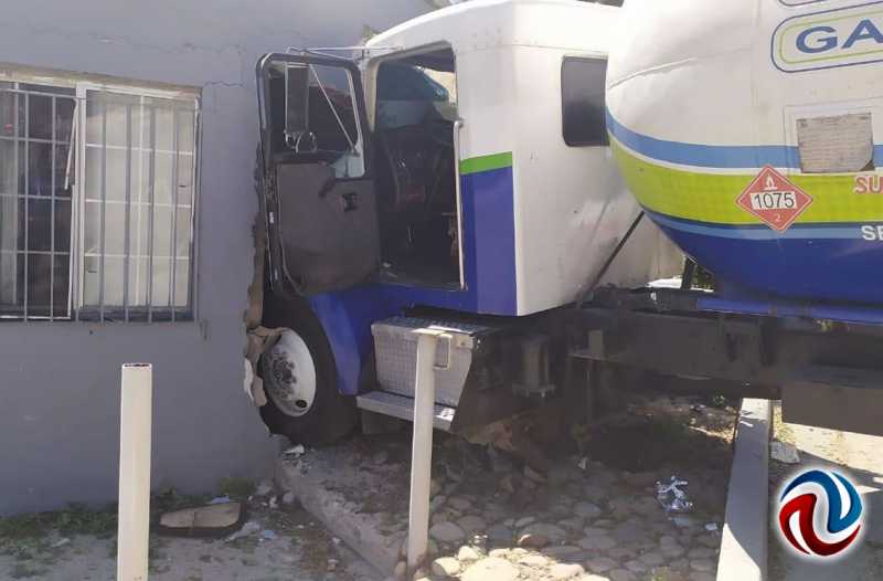 Los hechos se registraron esta tarde sobre la avenida Diego Rivera esquina con calle Manuel Ávila Camacho (18), en donde el conductor del vehículo repartidor de gas de la empresa “Z Gas” perdió el control de la misma hasta impactarse con una casa.