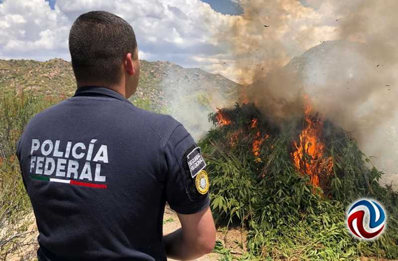 ENSENADA BC 9 DE AGOSTO DE 2019 (AFN).- Un sembradío que contenía alrededor de 13 mil 50 plantas de marihuana, cada una de ellas con peso aproximado a los 85 gramos y peso total aproximado de una tonelada, fue inhabilitado y destruido por incineración por oficiales de la Policía Federal