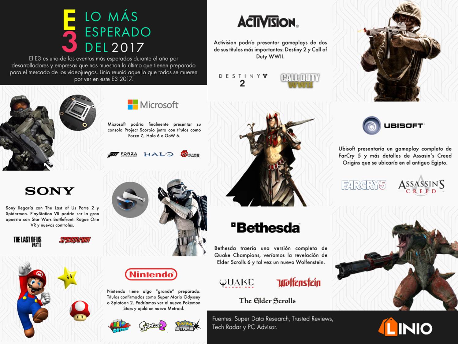 Este E3 viene con grandes sorpresas, desde nuevos títulos, hasta consolas que tal vez veamos la próxima temporada decembrina. Esto es lo que en Linio creemos, no debes perderte del evento de videojuegos más importante de América: El E3 2017.